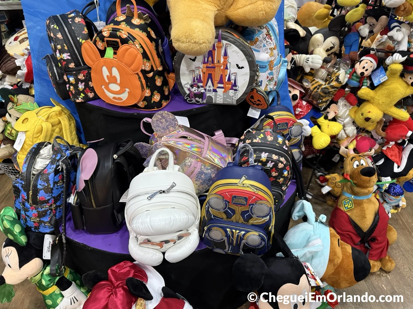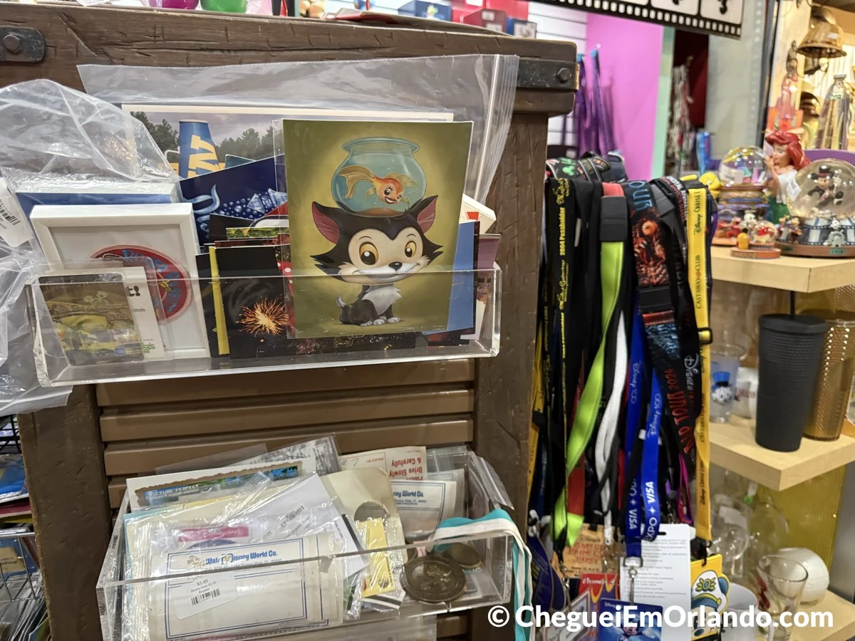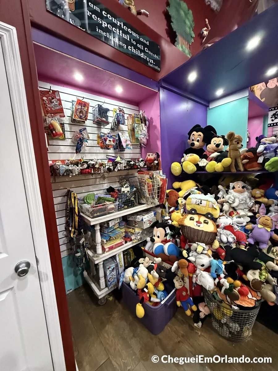 A variedade aqui simplesmente encanta! Tem roupas, fantasias, itens de decoração, quadros originais das animações dos filmes clássicos e uma seleção enorme de colecionáveis como pins, chaveiros, orelhas da Minnie, pelúcias, canecas, quadros e tantas outras peças diferentes que aparecem por lá. E o mais interessante é que tudo vai mudando o tempo todo, conforme os itens chegam e saem rapidamente, além de ser sempre mais barato do que nos parques!